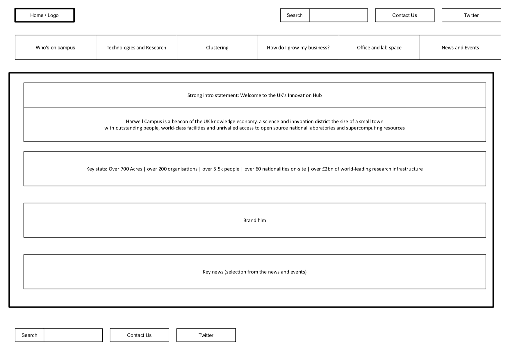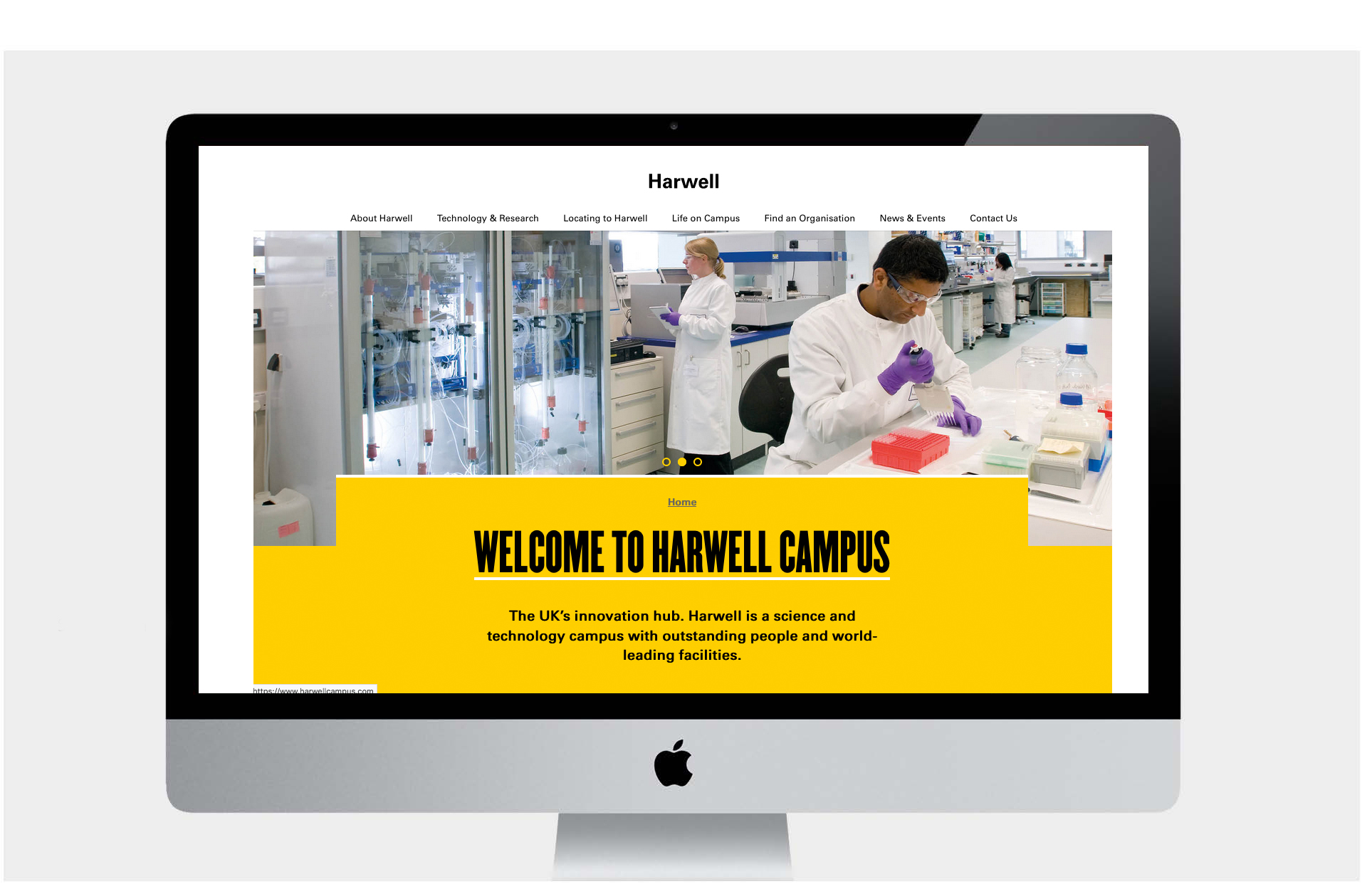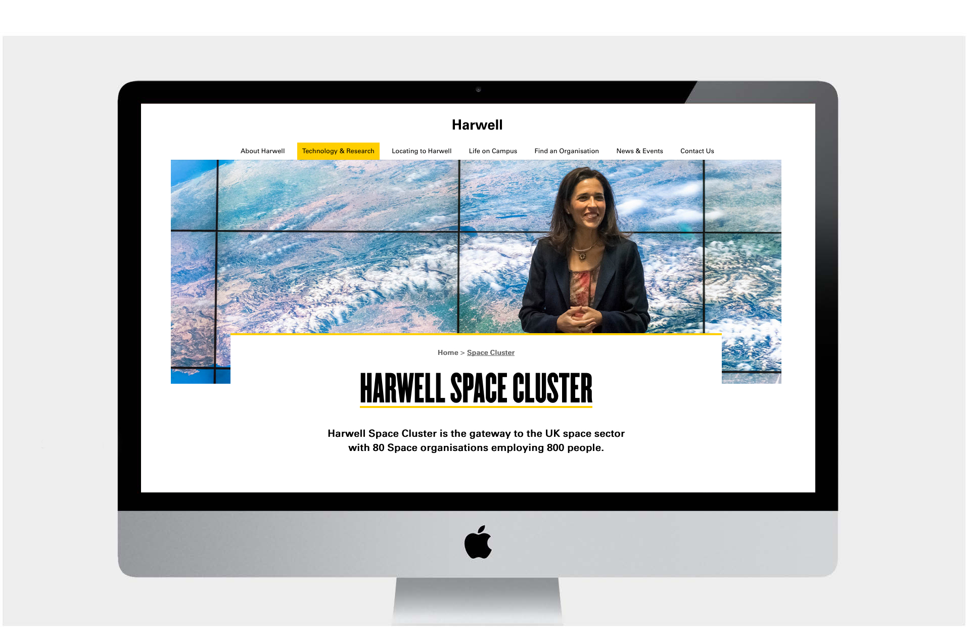 We now have a clear message on the homepage explaining the purpose and significance of Harwell. The quote is strong and emotive, and is supported with a clear statement of the mission.